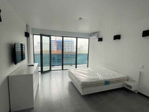 Эта квартира 39 квадратных метров, имеет 1 спальню, ванную комнату, кухню-гостиную вместе, 1 балкон. Потолок нестандартный, скошенный, новая мебель и техника.