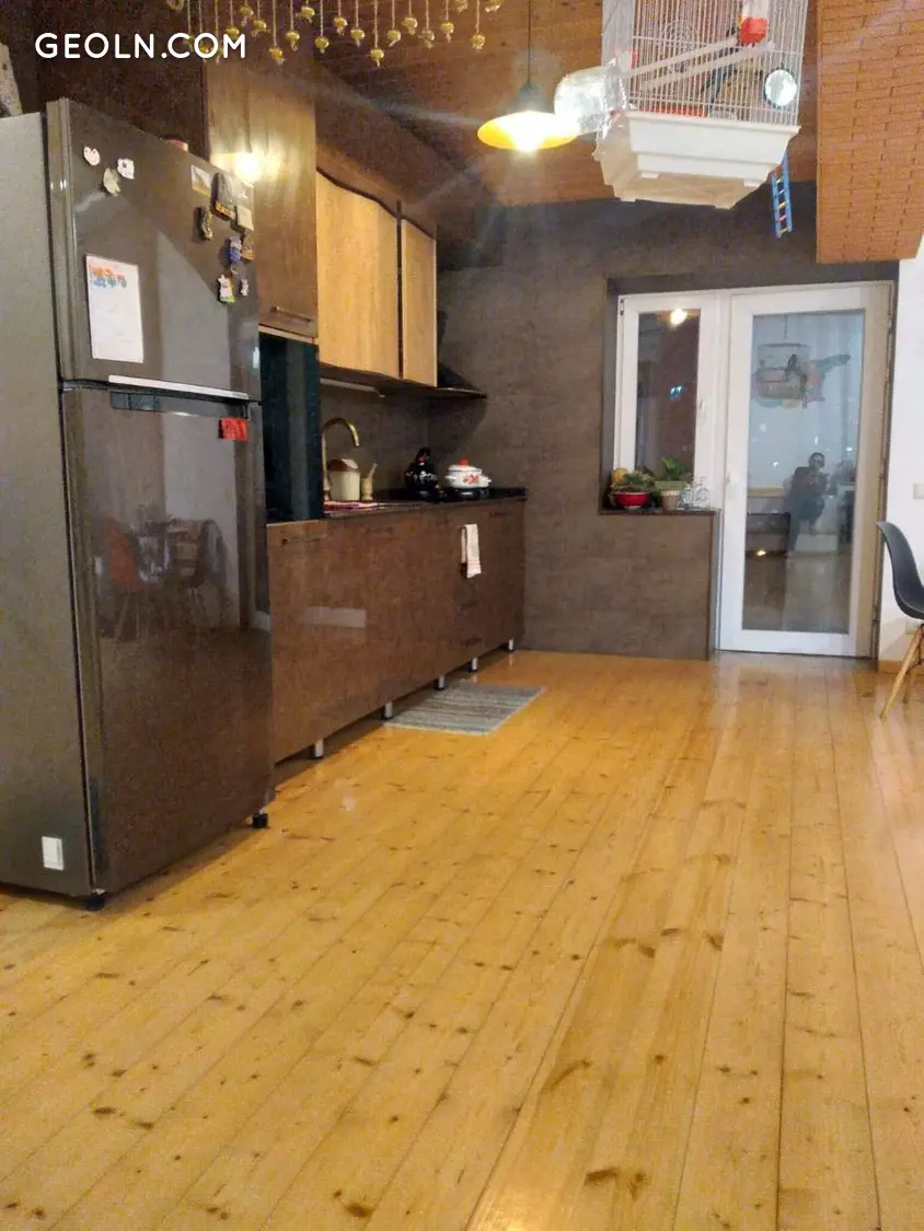 Квартира типа дуплекс, общей площадью 94 квадратных метра, 64 кв.м. внизу и 30 кв.м. наверху.