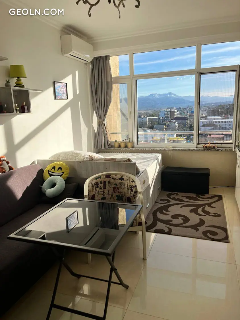В городе Кобулети продается квартира, общая площадь 28м2. Светлая уютная , солнечная сторона, 9 этаж, быстрый лифт, качественная мебель и техника ( остаются новым хозяевам);