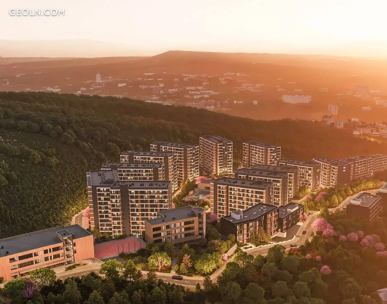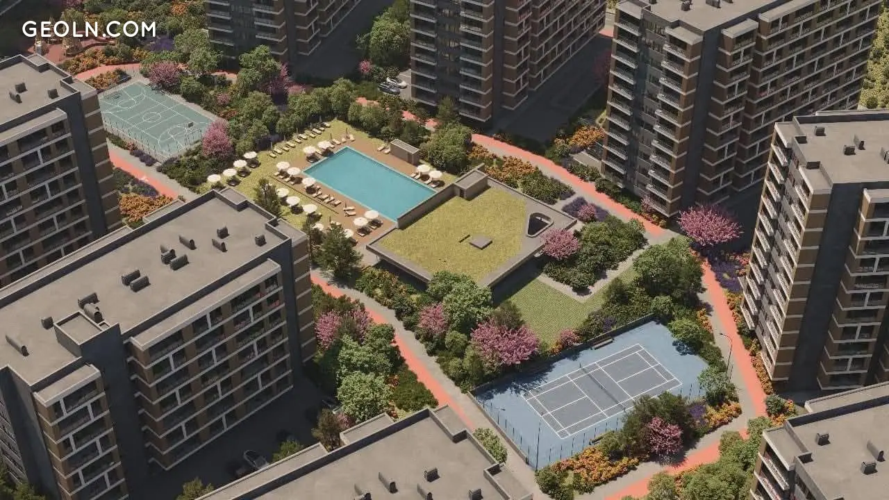 Комплекс повністю завершений, проведено ландшафтний дизайн.