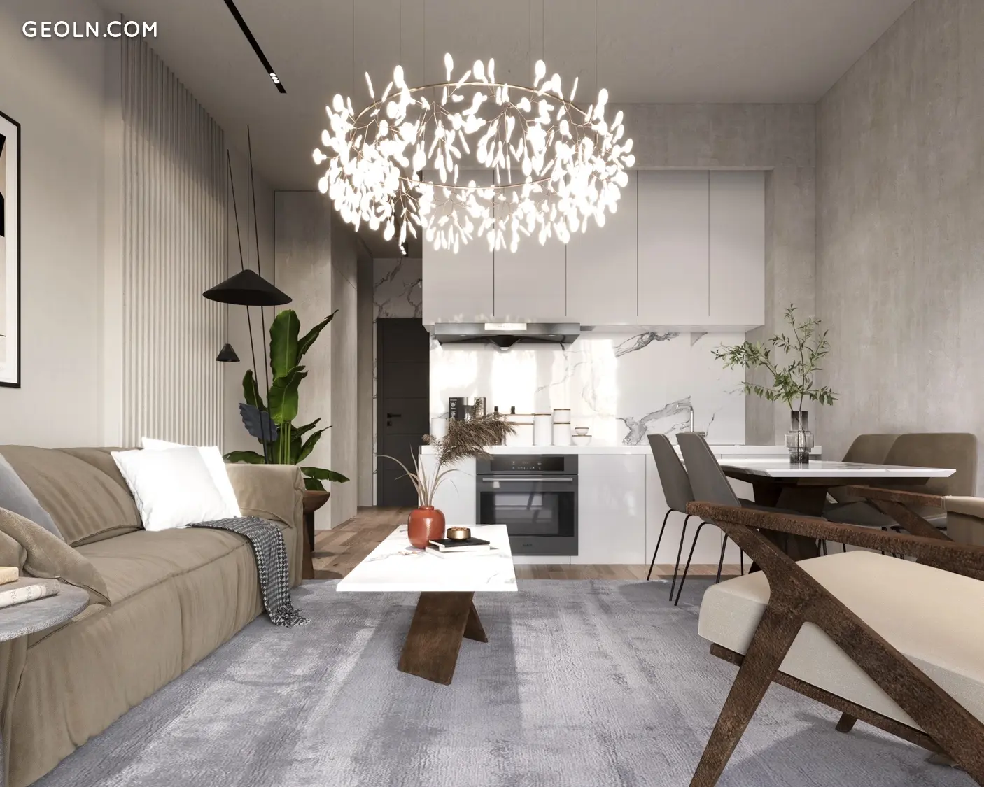 • Планування: 2-кімнатна квартира (1 спальня + вітальня/кухня)