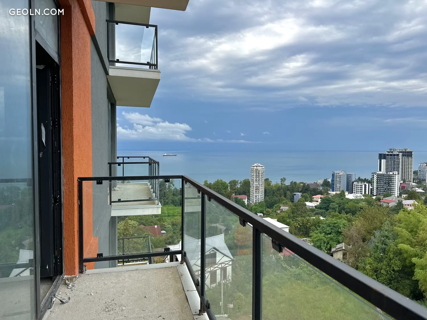 Квартира з великою площею 99 м² на 5 поверсі. Зручне планування з просторною кухнею-студією з двома панорамними вікнами, дві великі спальні, два санвузли, зручний передпокій та два балкони. Квартира в стані «чорного каркаса». Має унікальний оглядовий вид на море та гори.