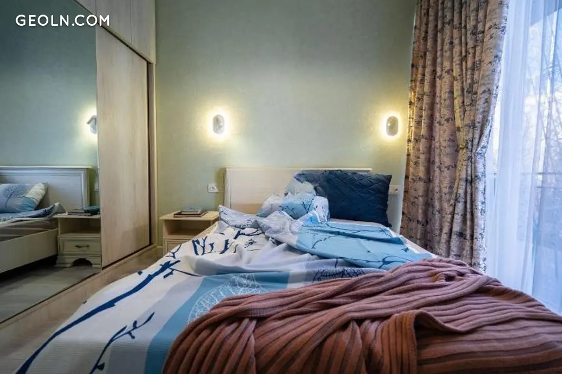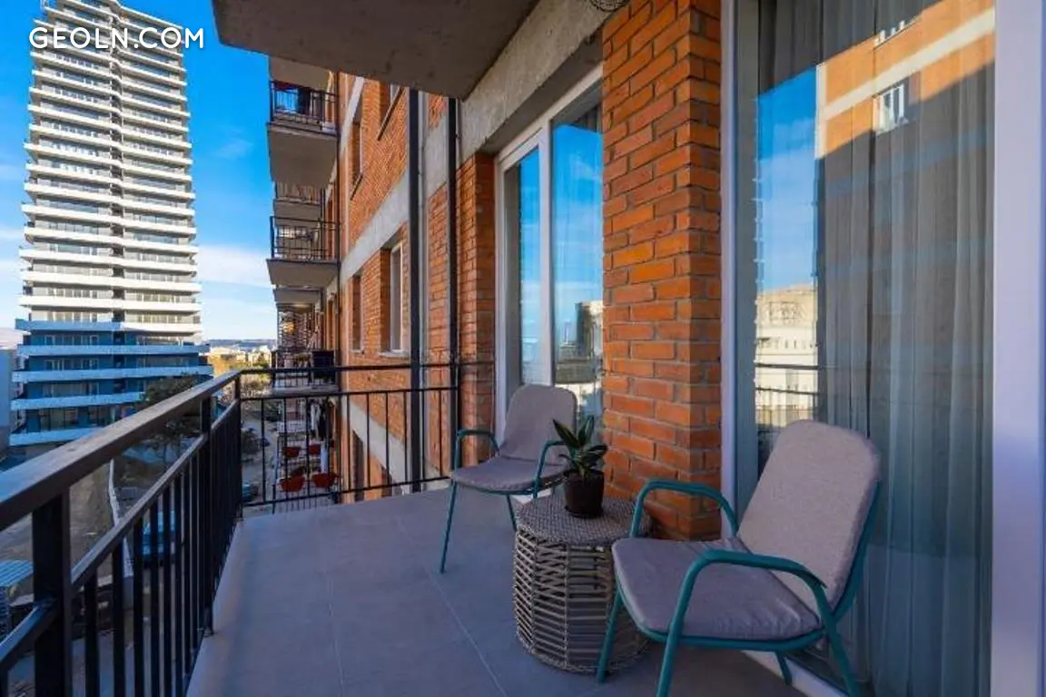 Продається 3-кімнатна нова відремонтована квартира на Сабуртало на вулиці Політковської, в новозбудованому будинку, загальною площею 60 кв. м. 5-й (9) поверх, 2 спальні, центральне опалення, з меблями та технікою, кондиціонер