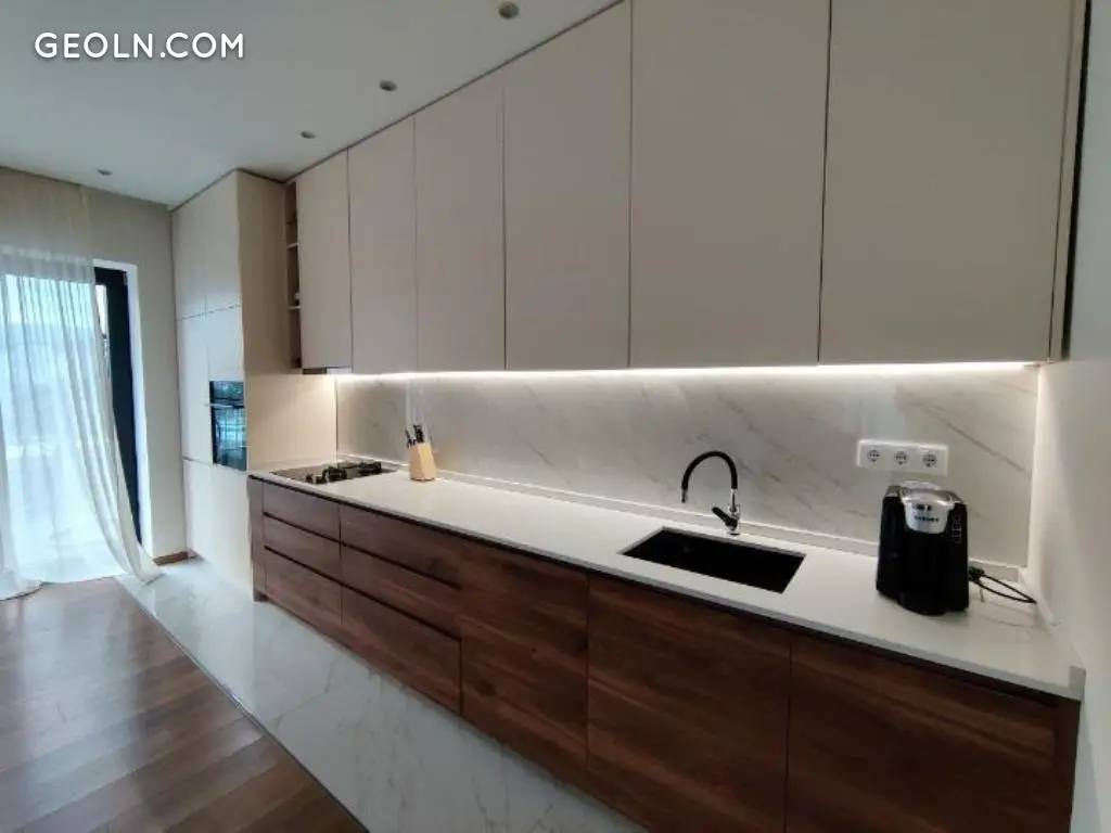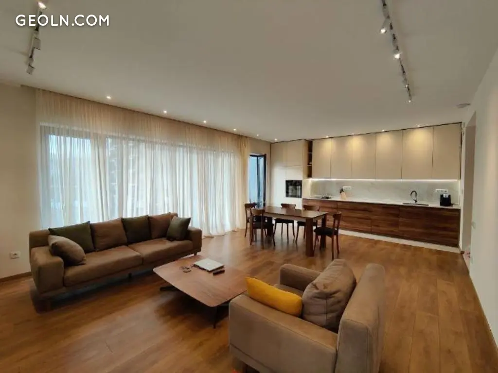 Продається 3-кімнатна нова відремонтована квартира на Сабуртало, на вулиці Анджапарідзе, в новозбудованому будинку, загальна площа 133 кв. м, 17-й (23) поверх, 2 спальні, центральне опалення, з меблями та технікою, 2 санвузли, балкон 39 кв. м