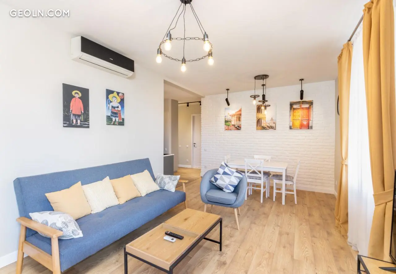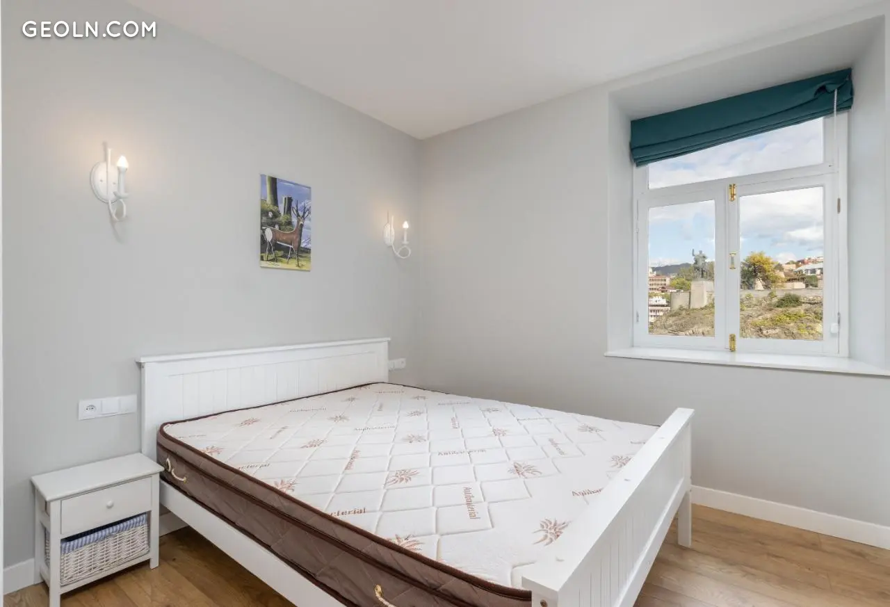 Продається або здається в оренду 3-кімнатна квартира з новим ремонтом на вулиці Горгаслі, біля Мейдану, нестандартна, 50 кв. м, на 2(2) поверсі, з новими меблями та технікою, центральним опаленням, кондиціонером, 2 спальнями, з видом на місто та на річку Кура.