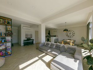 Продається велика простора квартира в районі Ісані. Будинок вторинної споруди. Відстань до центру міста становить близько шести кілометрів. Найближча велика промислова зона знаходиться майже в кілометрі від будинку. Біля будинку є автобусна зупинка, до станції метро «Самгорі» близько двох кілометрів. До найближчого дитячого саду вісімсот метрів, трохи далі розташовані три загальноосвітні школи. В радіусі одного кілометра є футбольний стадіон.