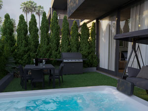 - 1-й поверх житловий: гостьова зала, кухня, спальня, санвузол;