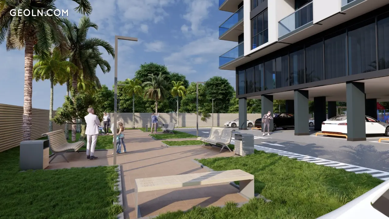 Супермаркет та магазини *100*100 в стані так званого білого каркаса, що включає: залізні вхідні двері (вогнетривкий, звуконепроникний), вікна та двері з металопластику з європейським варіантом відкриття та протимоскітною сіткою, внутрішні перегородки, оброблені (білі) стіни та підлога, електропроводку, проводку «мокрих» крапок , систему загального опалення, доступ до мережі природного га за, протипожежної охорони.