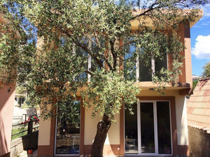 Дом с потрясающим видом на залив и горы в городе Тиват. Расположен напротив живописного парка Жупа в 450 метрах от залива и в 800 метрах от центра города. Общая площадь дома около 270м2, размер участка 428 м2.Трехуровневый дом имеет два отдельных входа.2 этаж: 2 спальни, обеденная зона с кухней, гостиная, санузел, подсобное помещение лестница на третий этаж, балкон и терраса; .
