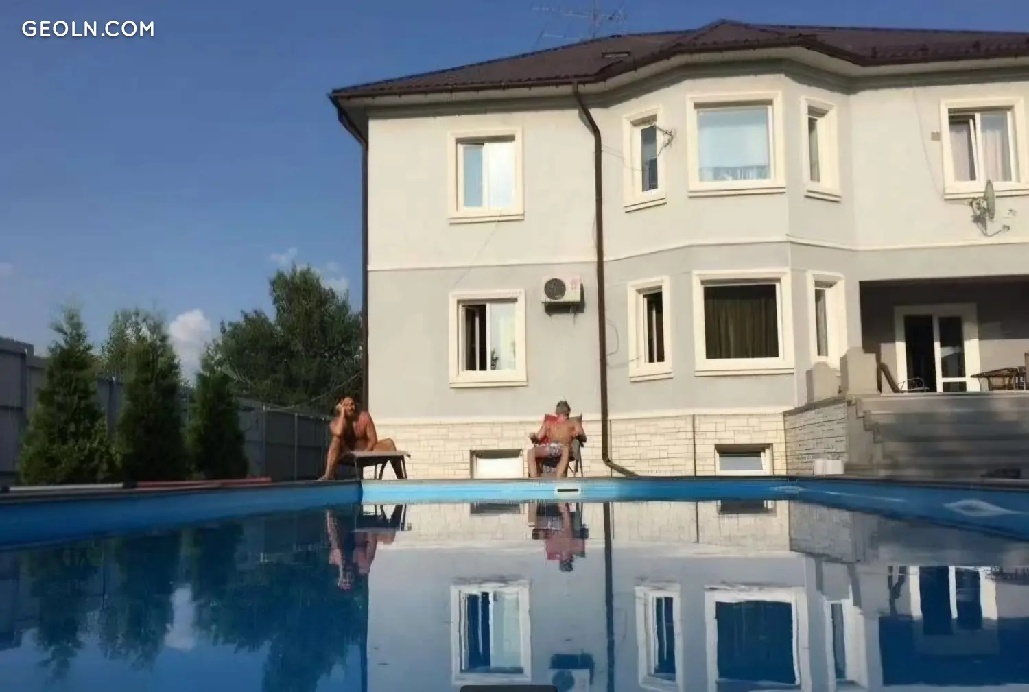 Двор полностью благоустроен, паркинг на 10 автомобилей, газон, бассейн открытый размером 4,5м на 7 м. Автоматические въездные ворота. Из столовой стеклянная дверь на террасу в 20 метров, которая ведет во двор с бассейном.
