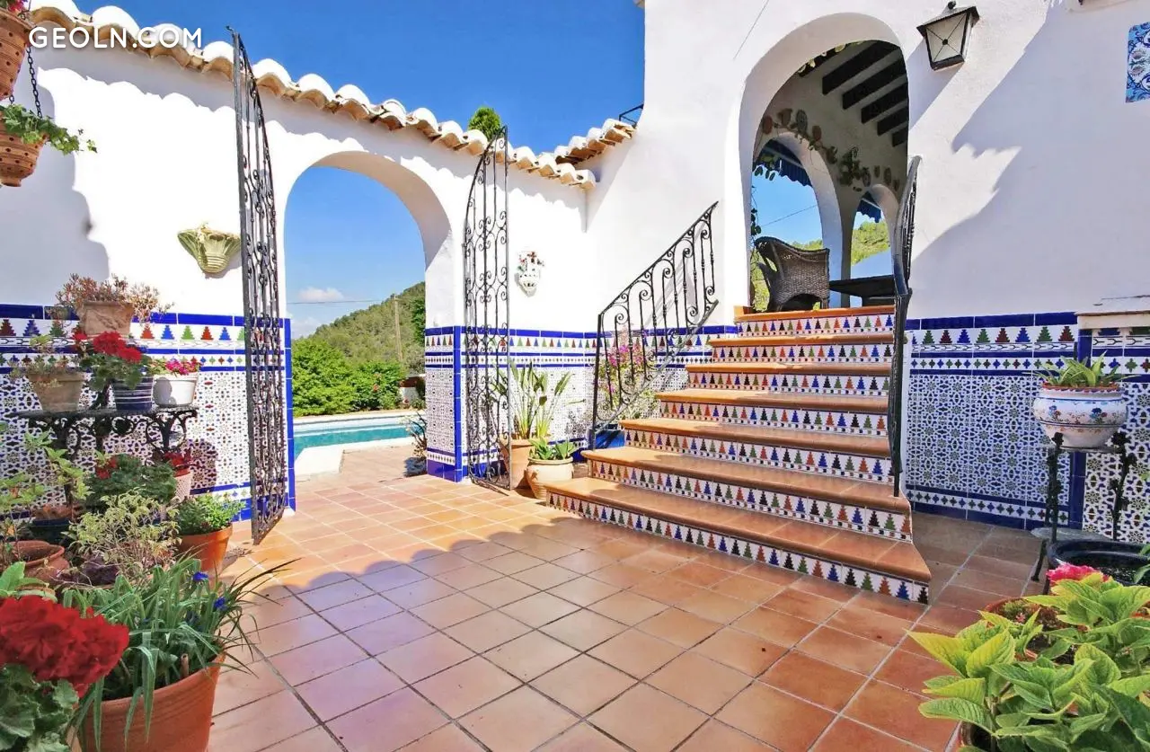 Прекрасна вілла у стилі фінка на продаж у Хесус Побр. Розташований між Хавеа та Денія з неймовірним видом, використовуючи долину. Самобутня частина цього будинку налічує понад 150 років і була розширена та відмінно зберігається протягом багатьох років. Хороша крита тераса веде до добре обладнаний всі зручності та комору. Окрема їдальня може бути третій двомісний номер. Затишна вітальня має газовий камін, стельові балки та двері в Андалузії Патіо. Офіс та бібліотека на верхньому майданчику з вікном Vellux - обидва можуть бути використані як спальні райони. На другому поверсі знаходяться 2 спальні та 2 ванні кімнати. Спальня простора з ванною кімнатою з душовою кабіною та дверима, що ведуть на криту терасу. Додатково включені у продаж цього стилю вілли садиба включають центральне опалення, стельові вентилятори, жалюзі, сушки для рушників у ванних кімнатах, пральня з патіо, інтернет, супутникове телебачення і сонячні батареї для гарячої води. Ви можете відпочити біля басейну 10x5 віялоподібних або пообідати на відкритому повітрі під криту/барбекю їдальні. Будинок оточений великою приватною ділянкою, який був ландшафтним з легким обслуговуванням на увазі, на декількох рівнях з місцевими рослинами, рокерів, петанк, особливість колодязем, фруктові дерева, гараж і паркування. Ця красива Вілла Фінка для продажу в Хесус Побр, між Хавеа і Денія, захопить вас, щоб призначити зустріч сьогодні, і приходять подивитися на себе. Радянський податок: 575,97 євро