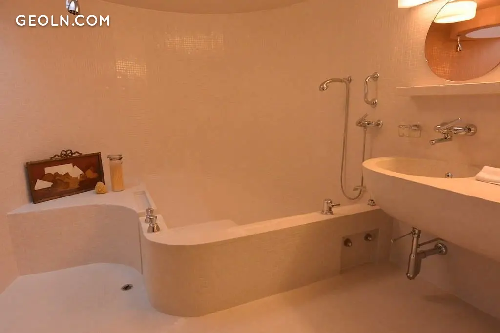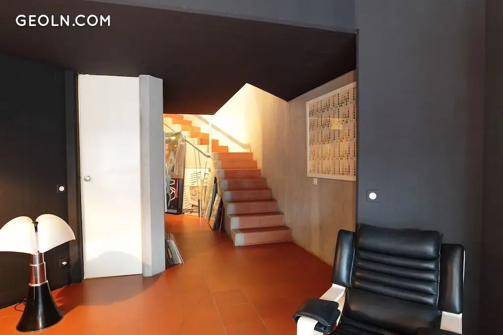 Ця вражаюча квартира - яскравий приклад архітектури 1970-х років, що зберегла все своє значення і сучасний стиль. Тяжкість бетону чудово поєднується з ручною обробкою деталей, таких як ручна робота Мозаїка у ванних кімнатах. Просторі та високі приміщення дуже яскраві та забезпечені стельовими ліхтарями, що створюють гарні ігри.