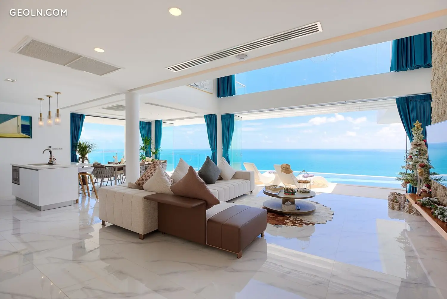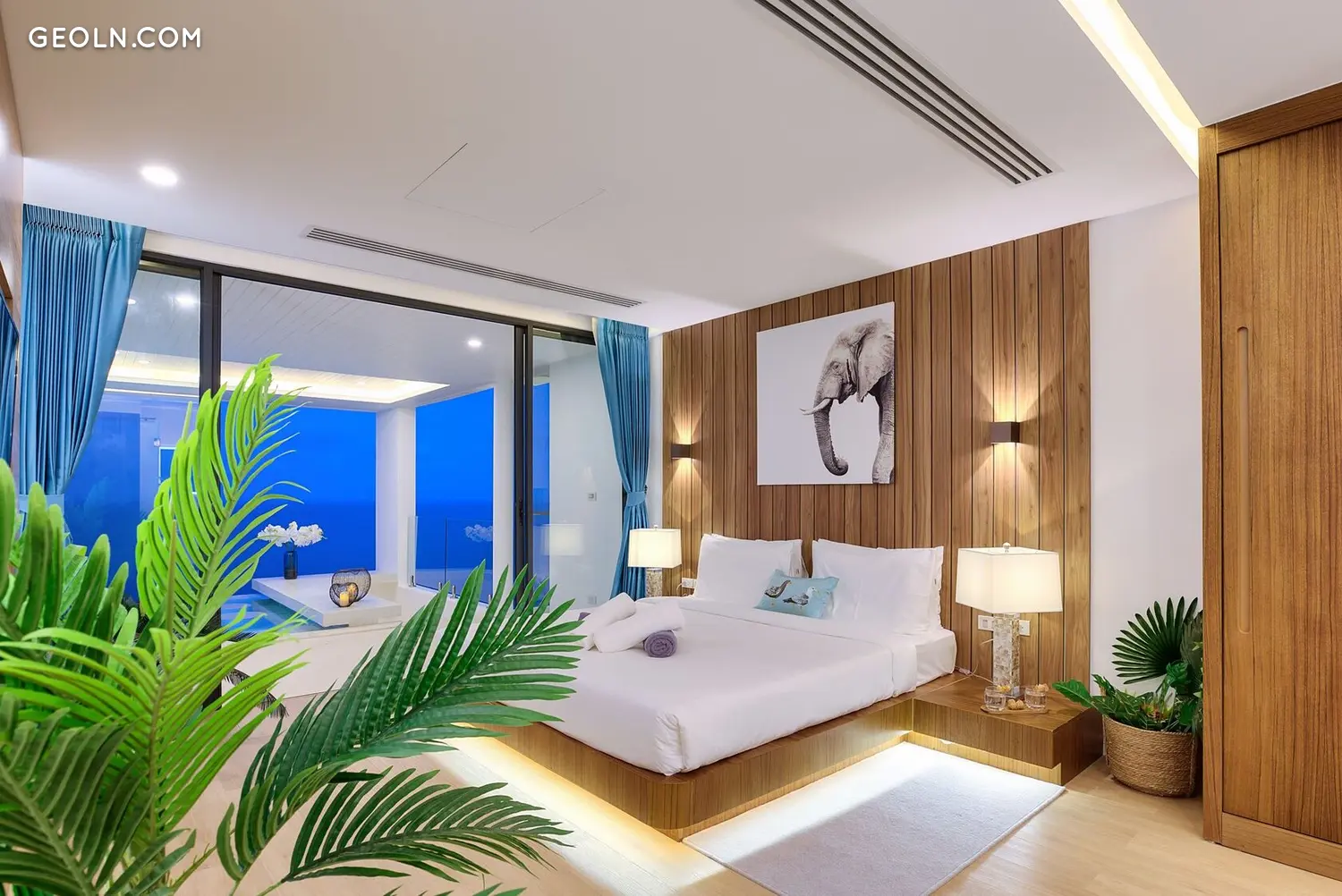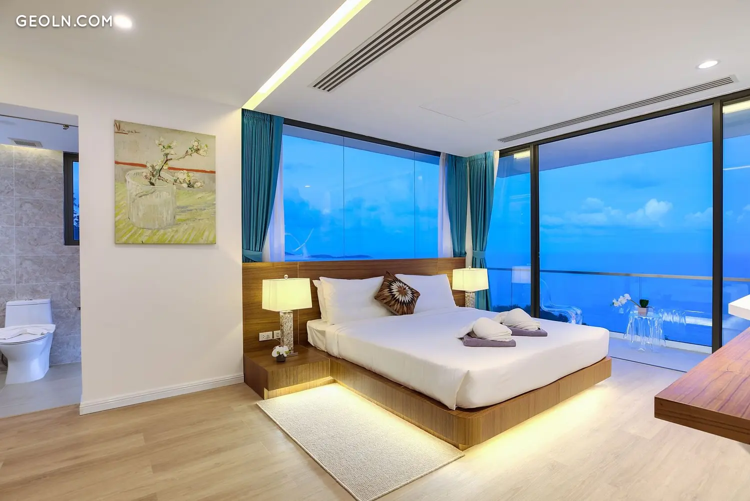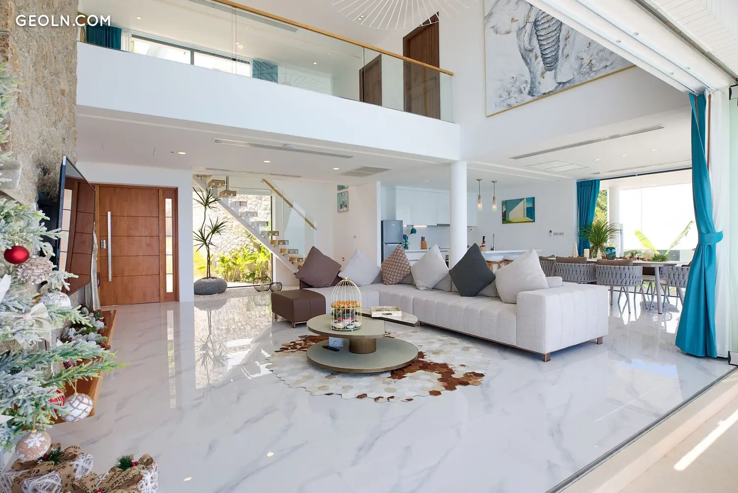 Продається простора п'ятикімнатна вілла з видом на море. Загальна площа ділянки становить 335,2 кв. м, житлова площа - 308 кв. м. Вона розташована в престижному районі Чавенг Ной на острові Ко Самуї. Цей сучасний будинок, побудований у 2019 році, поєднує в собі продуманий дизайн, комфорт і високу якість виконання. Нерухомість знаходиться в закритому комплексі на схилі пагорба, що пропонує захоплюючі панорамні види на море.