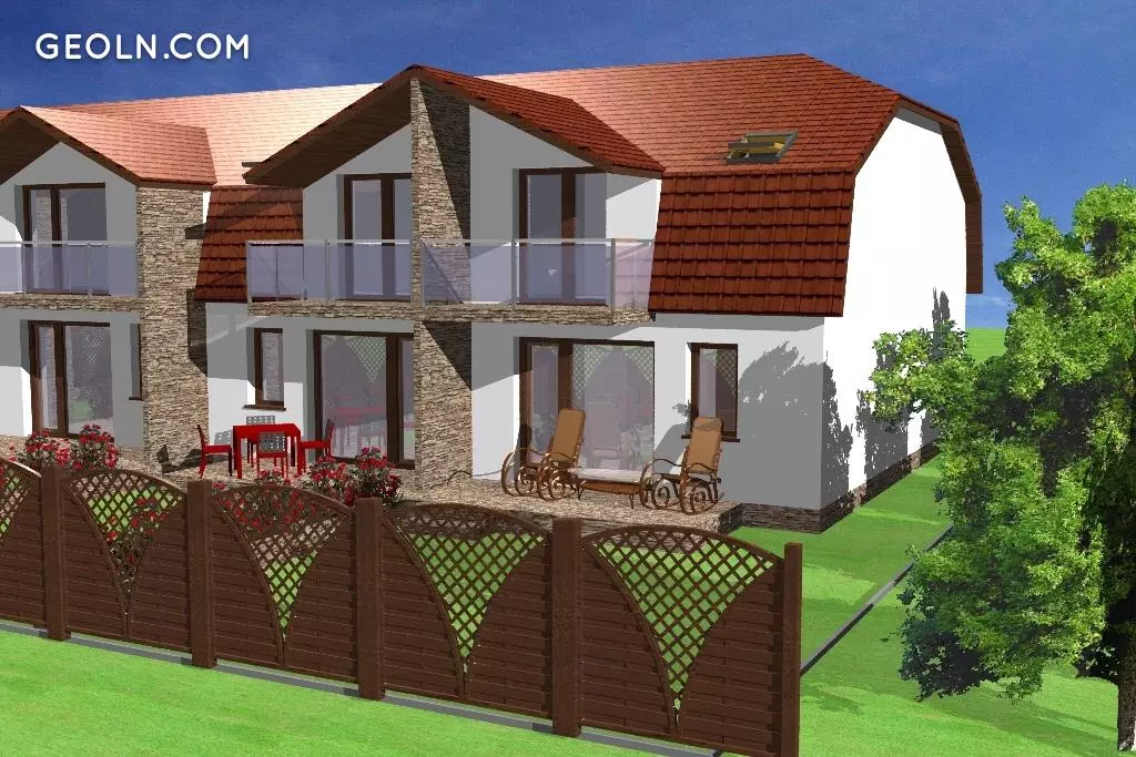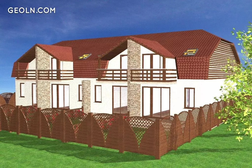 Сусідство з терасами вілл розроблено з трьома проектами, для кожного проекту є чотири - п'ять вілл з цокольним поверхом та мансардою або вілли з цокольним поверхом, поверхом і мансардою, будинки побудовані з дуплексів типу, і всі мають підвищений рівень. сейсмостійкості. Аналогічним чином, підвищена міцність будівель забезпечується залізобетонною конструкцією. Купе будинків виконано з цегли. Всі конструкції добре ізольовані зовні полістирольної системою товщиною 10 см. Дах будівель має листові покриття. Вікна та двері будинків з термопанелі. Зовні вілли оброблені білою штукатуркою, яка ідеально поєднується з кольором покрівлі темно-коричневого кольору (мстити).