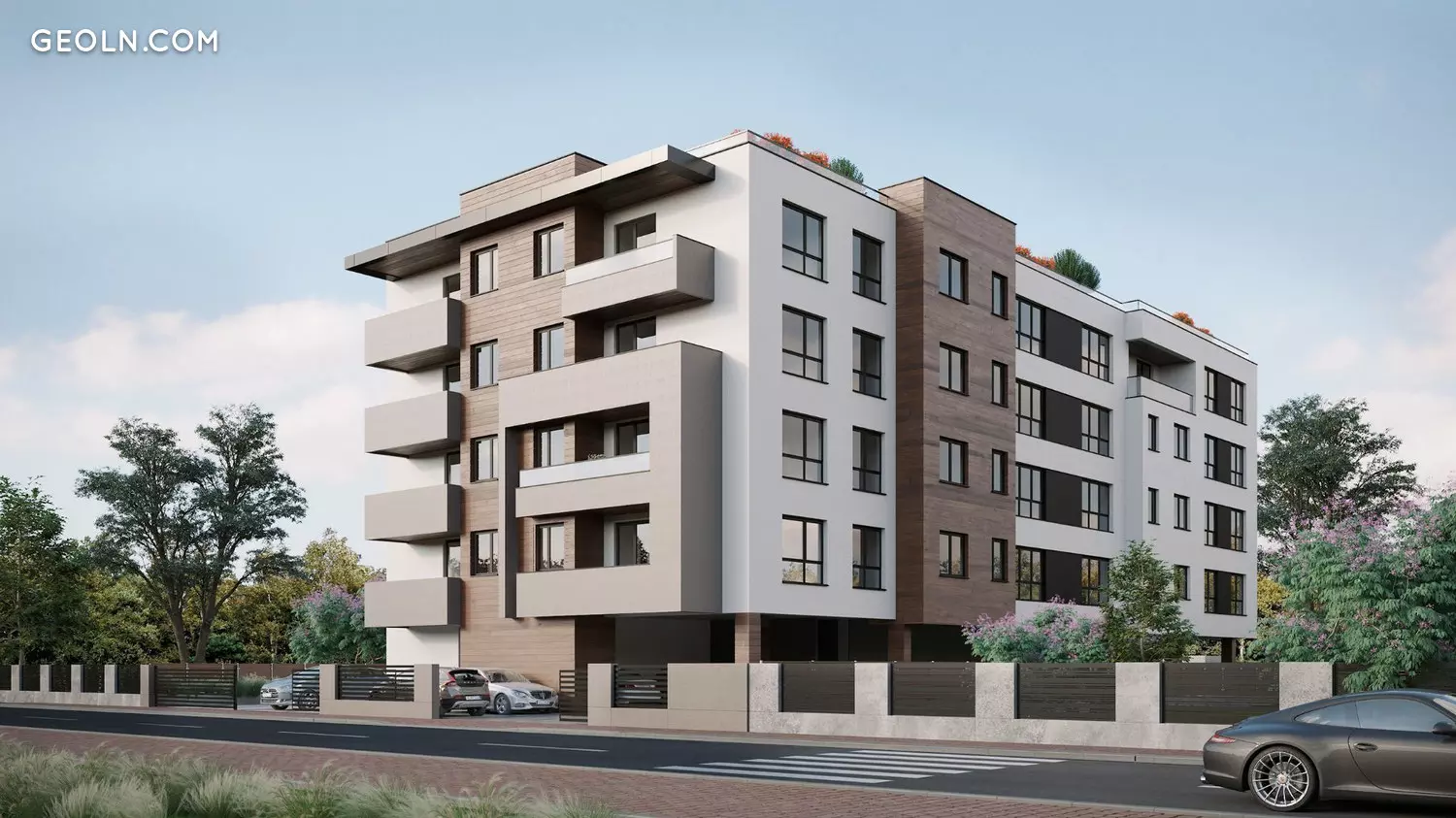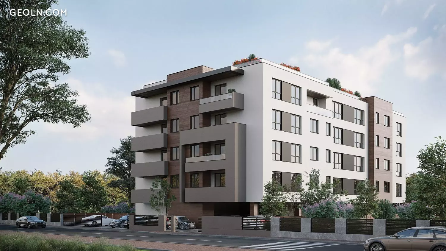 Надійна система зовнішньої теплоізоляції використовується для зовнішньої обробки багатоквартирного будинку. Зовнішній вигляд будівлі сучасний і приємний, дизайнери використовували елементи зовнішньої обробки з правильними лініями і асиметричними формами. І для зовнішнього вигляду блоку особлива увага приділяється білому, сірому і деяким відтінкам коричневого. Комплекс повністю обгороджений і має криті та відкриті паркувальні місця, застраховані для кожної квартири.