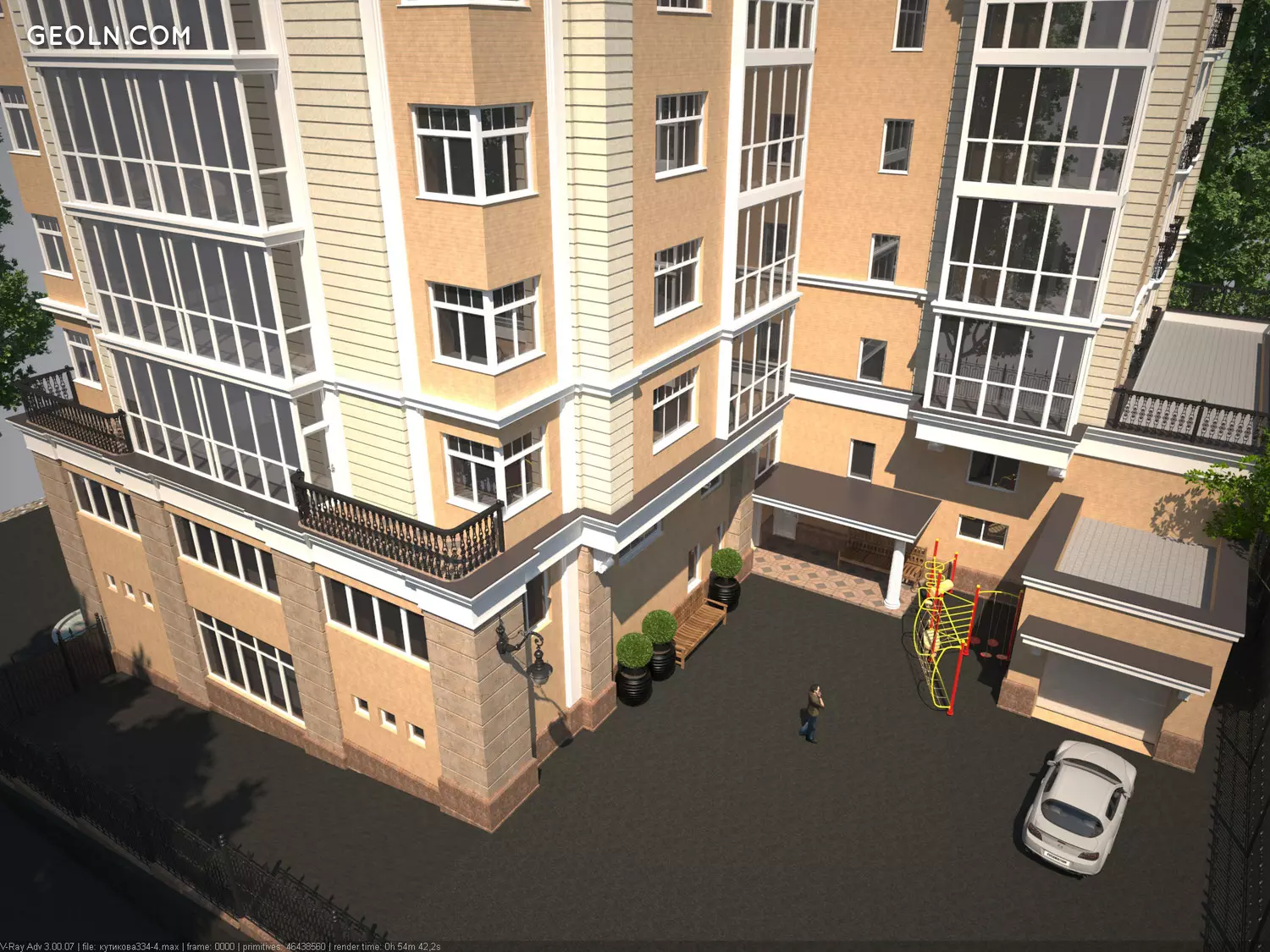 На обгородженій території, що охороняється розташувалися дитячі та спортивні майданчики, підземний паркінг, озеленення. У крокової доступності знаходяться медичні та освітні установи, дитячі сади, магазини.