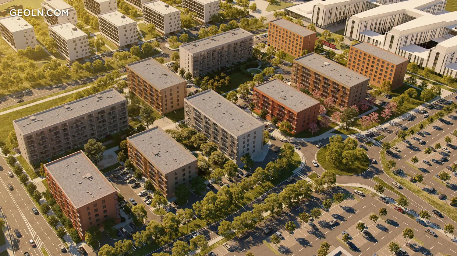 Бори Новий Двор був спроектований відомою, авторитетною студією Vallo Sadovsky Architects, щоб додати ще 18 чотирьох-шестиповерхових житлових будинків разом із 20 000 квадратних метрів громадського парку між будівлями.