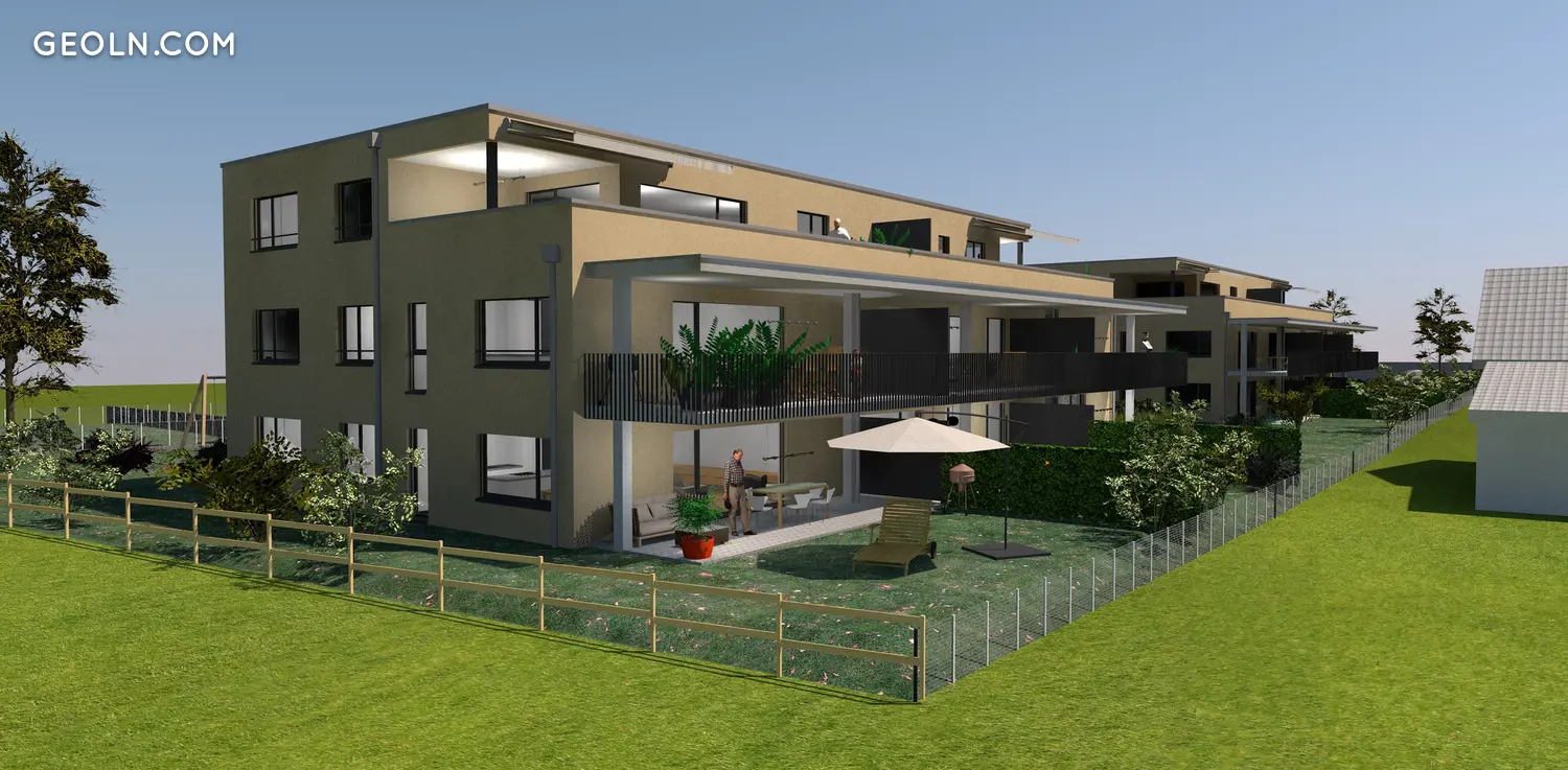 Ці багатоквартирні будинки з 3,5 та 4,5 кімнатами будуються на північно-східній околиці села, біля шкіл та центру села, у пішій доступності від вокзалу та лісу. Сімейні сади, просторі балкони та зони відпочинку, а також гараж із прямим виходом до будівлі – одні з ключових слів.
