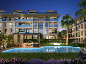 У секції тераси є різні типи квартир від 1 + 1 до 4 + 1. Цей розділ вирізняється красивою та приємною житловою площею своїми широкими терасами та горизонтальним плануванням, а також видом на внутрішній сад.