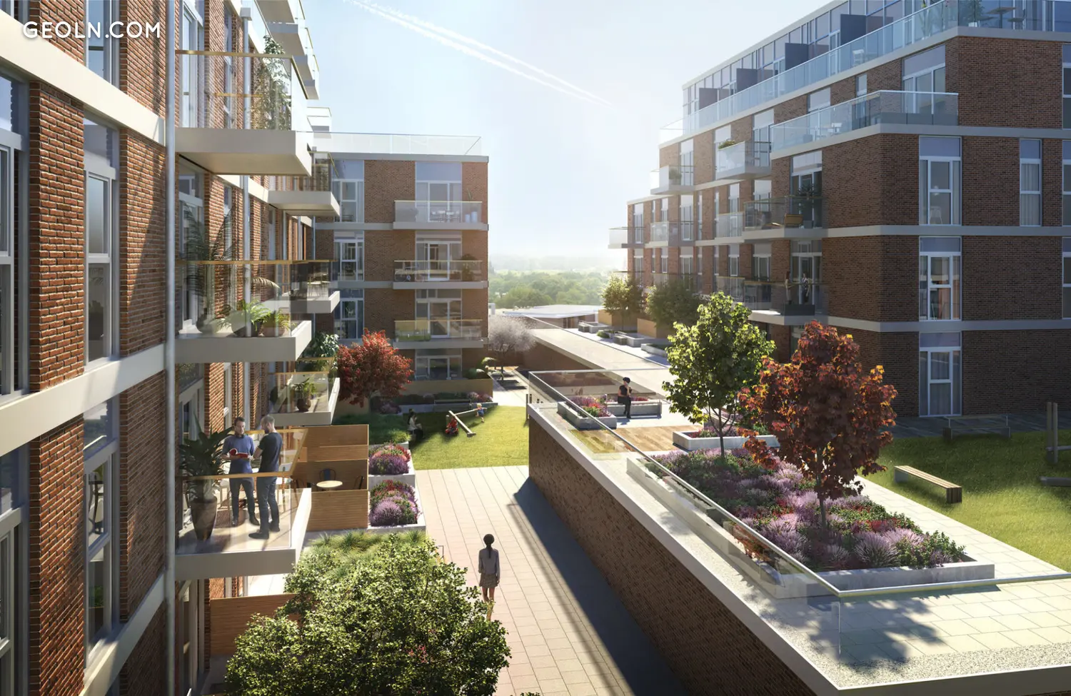 Забудова, ймовірно, стане новою визначною пам'яткою району і виділяється своїми вражаючими розмірами та сучасною архітектурою. Є ландшафтні тераси на даху та доглянуті комунальні дворики, які створюють місця для дозвілля та спілкування прямо у приміщенні. Апартаменти в кварталі Черчфілд мають вікна великих розмірів та приватні простори на відкритому повітрі.