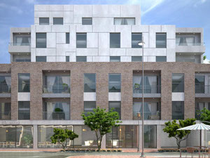 П’ятиповерхова прямокутна будівля захищена від зайнятої дороги Брікстон-Хілл у невеликій бічній ніші. Фасад перших 4 поверхів має піщано-цегляний малюнок, змішаний з вікнами від підлоги до стелі. Укладені балкони прикрашені білими перилами, що робить будівлю більш сяючою. Верхній поверх, покритий панелями рожевого відтінку, веде на простору терасу. У задній частині будівлі є спільний сад, який дає можливість сховатися подалі від міської суєти.