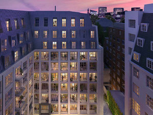 Lansbury Square-це 7-поверховий житловий комплекс, спроектований у сучасному стилі. Незважаючи на те, що будівля розташована в центрі одного з найпопулярніших районів для проживання, відчуття затишку та спокою випливає з нього. Прикраса виконана з цегли різних коричневих відтінків, трохи нагадує оздоблення старих особняків та замків. Комплекс має великі вікна з темними рамами та багато приватних балконів з чіткими, міцними скляними бортами. Деякі частини балконів також мають темні кольори, щоб вони поєднувалися з вікнами.