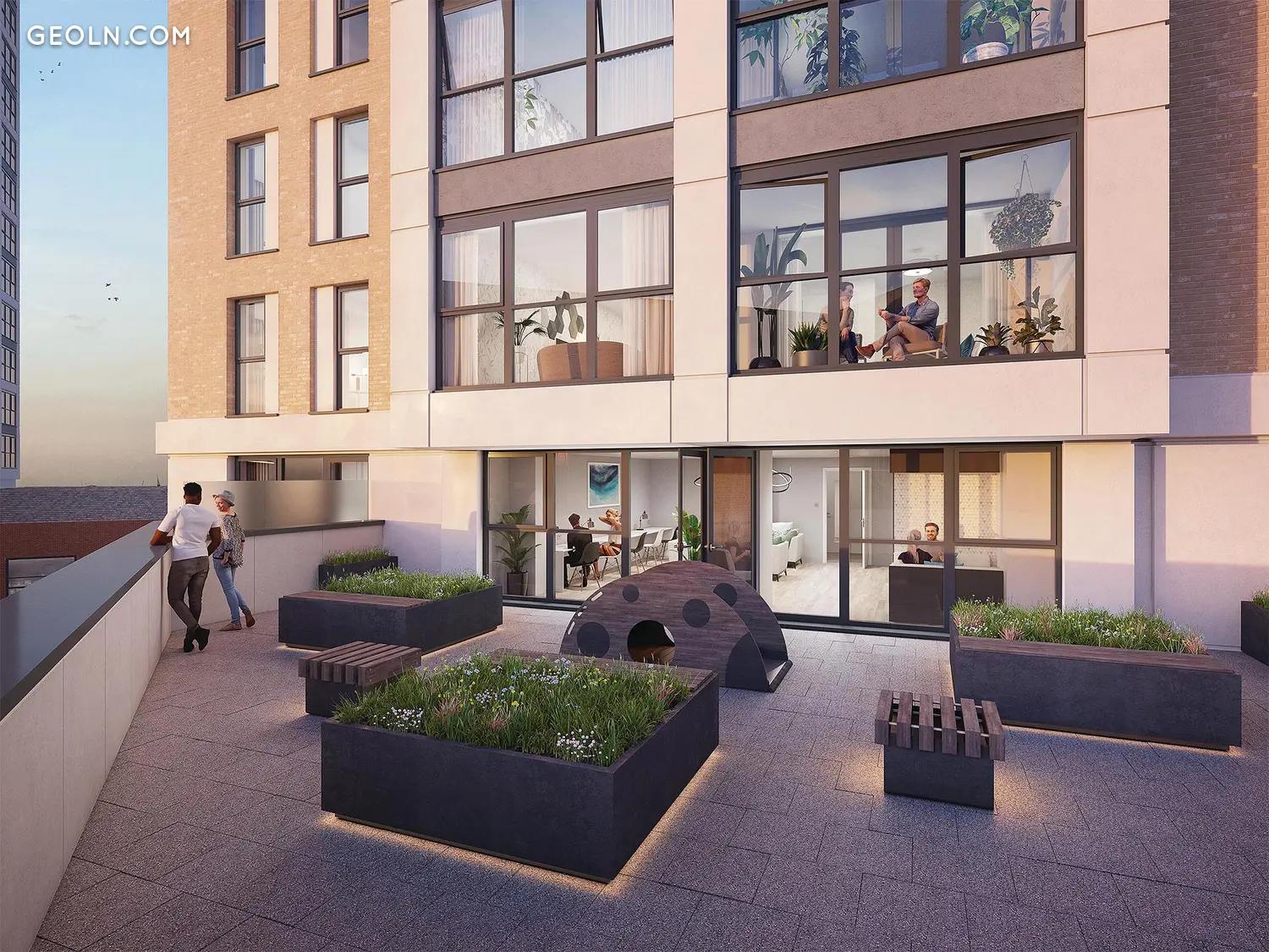 Мешканці Лондонської площі Кройдон мають можливість відпочити на одній з трьох мебльованих відкритих терас із зручними лавками, доглянутими клумбами та стильним декором. Це чудове місце, щоб погуляти з друзями та насолодитися видом на місто. Комплекс надає цілодобові послуги консьєржа, а також є приміщення для зберігання велосипедів з доступом на перший поверх через велосипедний підйомник. Система безпеки оснащена системою відеозйомки, димовою сигналізацією та виявленням, блокуванням вікон.