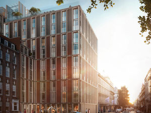 Усі будівлі демонструють однаковий цегляний візерунок світлого кольору з гладкими вікнами на всю висоту та двома типами балконів. Перший перетворює весь фасад, оскільки укладені балкони створюють окрему структуру, підтримувану білими стовпами, що змінює імідж будівлі. Другий тип представлений традиційними консольними балконами з бежевими перилами.