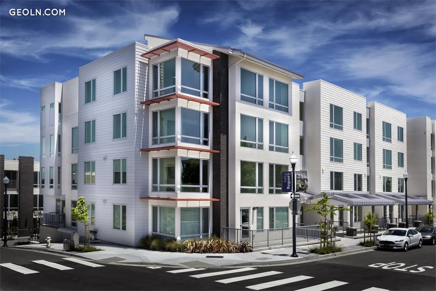 Landing - це найновіша колекція нових будинків, що продаються на суднобудівному заводі Сан-Франциско. Пропонуючи колекцію чудових нових кондомініумів з однією або трьома спальнями, кожен з них демонструє сучасний дизайн, підключені функції та окремі резиденції, з яких відкривається приголомшливий вид.