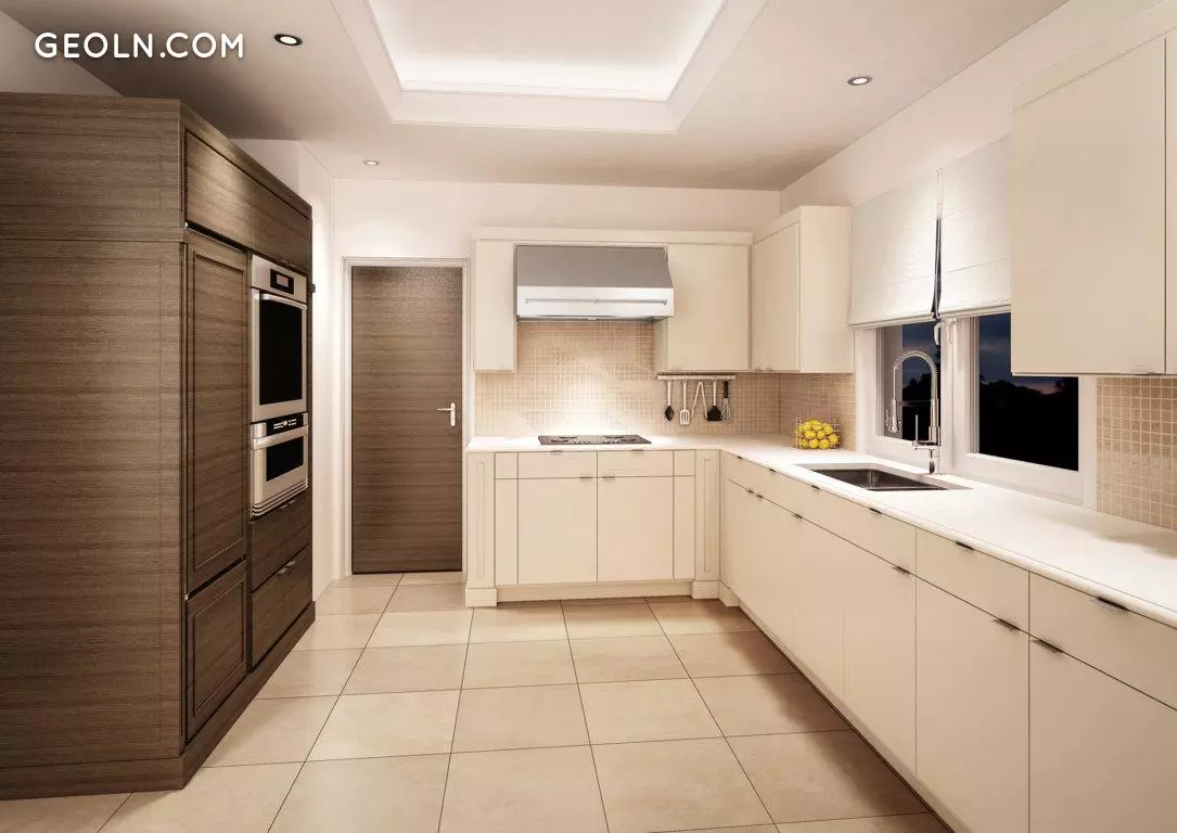 Laid out by paving slabs, paths go under the lush palm trees along the rows of 2- and 3-storey villas. The exteriors of the houses are designed in one general style, trimmed with beige and dark beige stone and a brown tiled roof. A part of the roof forms the upper terrace for rest, the other section is a hipped one, crowned with a pointed spire. Square columns, arched window openings and garage entrances resonate with the Italian architectural composition of the suburb.