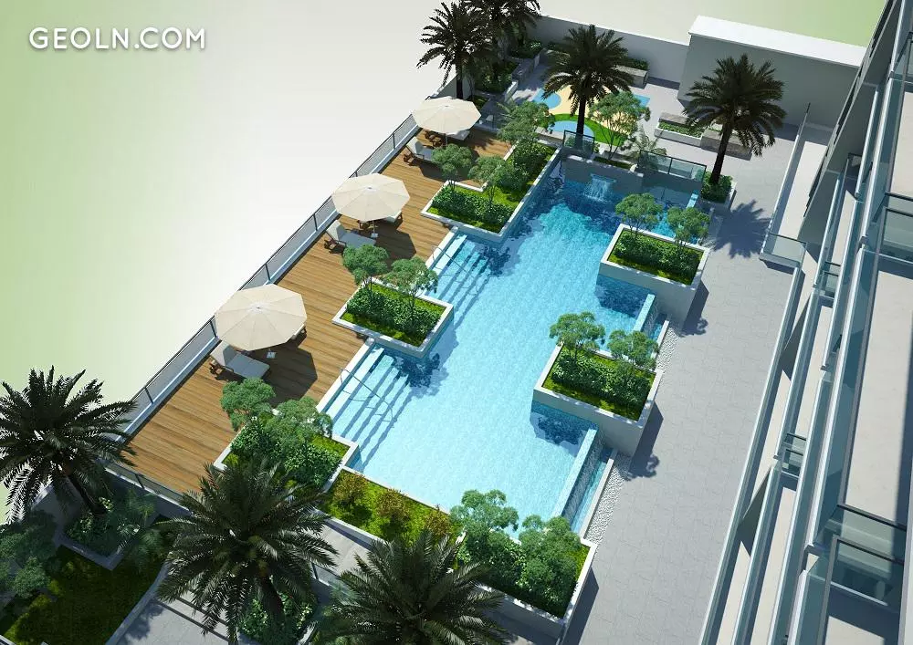 Dar Al Jawhara features striking elegance with large windows and comfortable balconies. The light colors of the facade and straight lines of the architecture look luxury. A recreation zone that includes a swimming pool, an area for barbeques and a terrace garden, is equipped on the landscaped housetop.