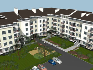 The courtyard of the complex is created in the concept of "barrier-free space" and paved with paving slabs. Solar panels are used to illuminate the area. The landscaping project provides safe playgrounds, a children's amusement park, a lounge area, multi-level ground parking and bicycle parking for fans of eco-transport. For the convenience of residents in each section - two entrances and a room for prams.