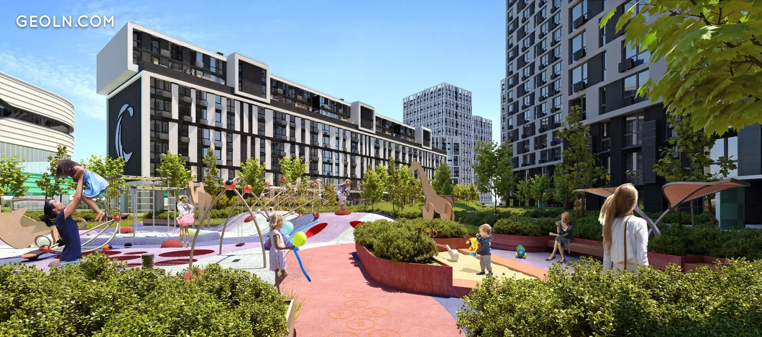 The Slavutich 2.0 internal infrastructure development project includes commercial premises on the ground floors of houses and the construction of a shopping center on the territory of the complex.