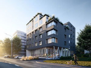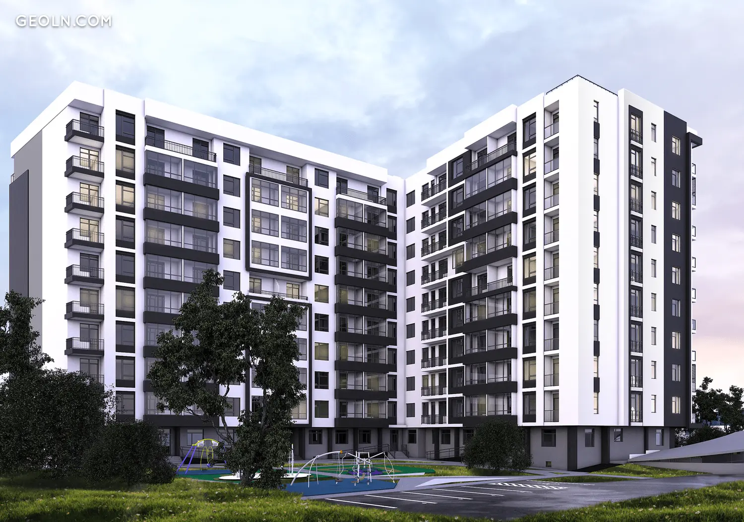 The first thing that catches the eye in the residential complex on Dovga Street, 30a, is the appearance of the house: the multi-level construction of the facade and contrasting black and white colors favorably distinguish the building from the surrounding architecture. Due to the large panoramic windows and the open location of the complex in the rooms will always be plenty of sunlight. There is also an underground parking lot in the house, so there will be a safe area for pedestrians in the yard.