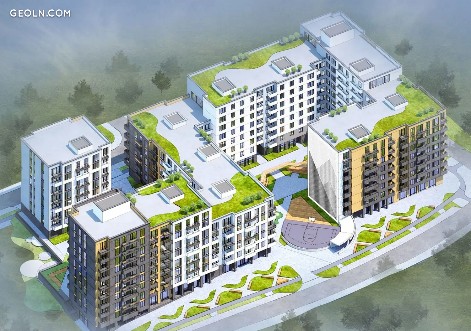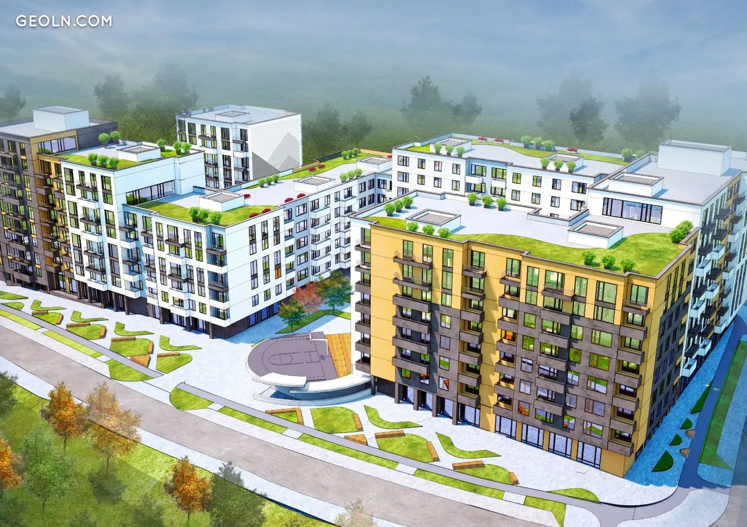 The residential complex "White Chocolate" is an apartment 10 minutes from the historic center of Lviv. Houses of different storeys formed a closed residential area with its own infrastructure, landscaped yard, playgrounds and sports grounds, recreation areas and parking. According to the project, green islands will be arranged on the roofs of the houses - species terraces that allow you to admire the surrounding landscapes.