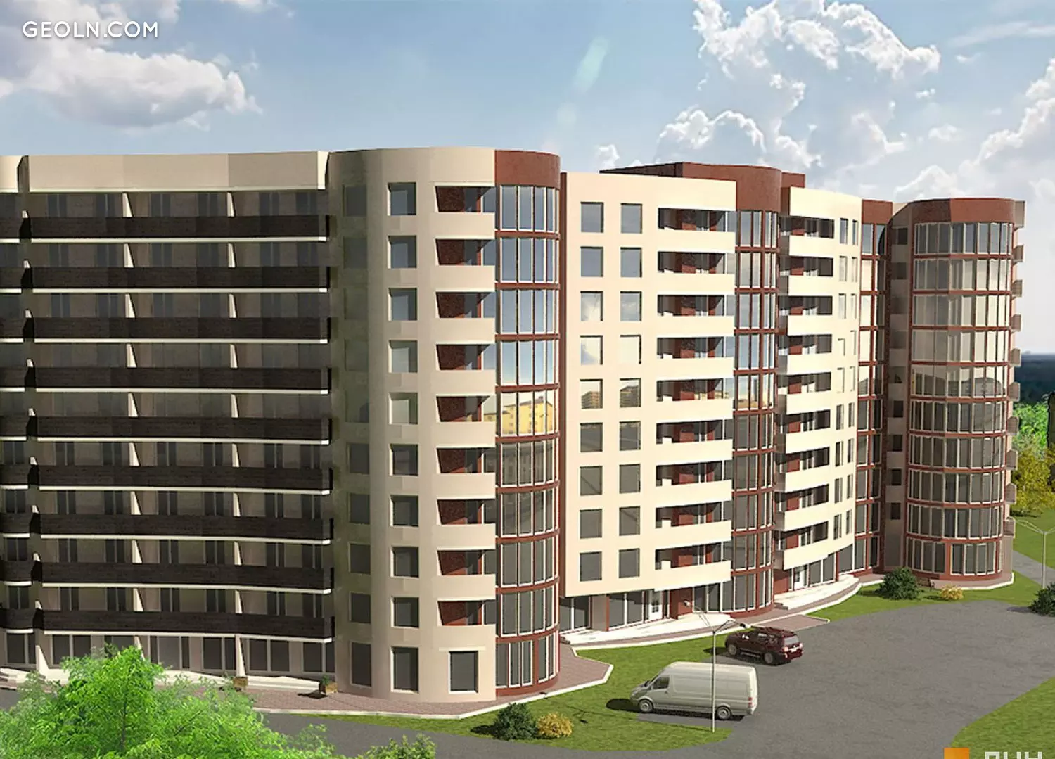 Apartment building with built-in and attached parking lots and a public service unit. Ternopil city, Solnechny district on Kievskaya-Smakuly street.