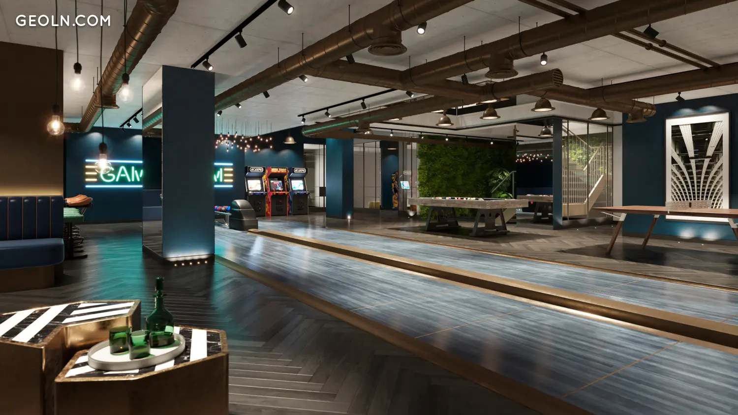 The five-star residential experience at The Stage is ensured via a range of amenities: 2 cinema rooms, a gym, bowling lanes, a games lounge, an executive lounge and rooms for business meetings. Additionally, there is a sky lounge with a terrace on the 32nd floor. On-site co-working facilities are provided by the worldwide brand WeWork. There is a secure video phone entry system to all apartments.