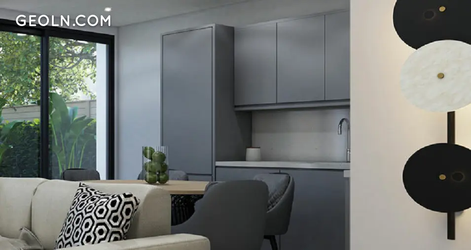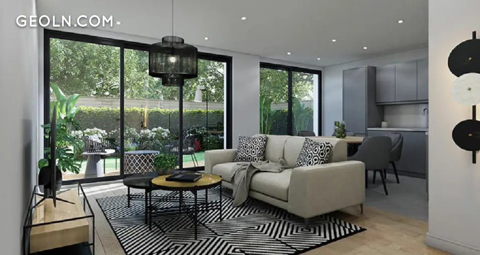 The elegant 3-storey building is perched at Crystal Palace Park Road. The modern-style façade combines high-quality materials in a sophisticated design. The red-brick exterior is accentuated by light wooden details and off-white balconies with delicate glass balustrades. For maximum natural light, Park 46 features huge floor-to-ceiling windows that also provide amazing views of Crystal Palace Park and South East London. Adding a village-like flair, the development is shielded by a wooden fence.