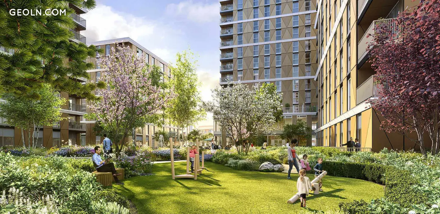 Eden Grove stands out for its vibrant contemporary architecture, a beautifully landscaped courtyard and a selection of amenities which are a rare find within the area. The six residential buildings of the development are set around the central communal area with a water feature, natural play areas for children and generously planted trees.