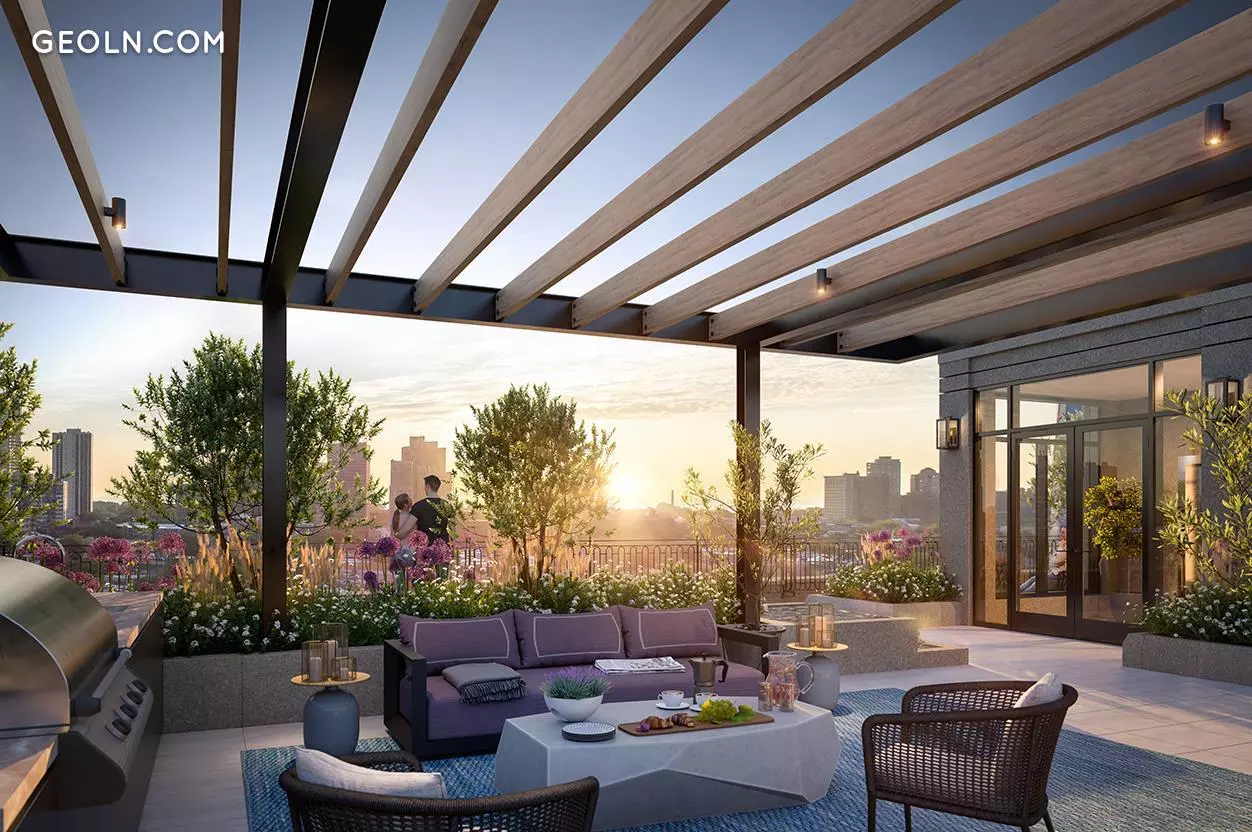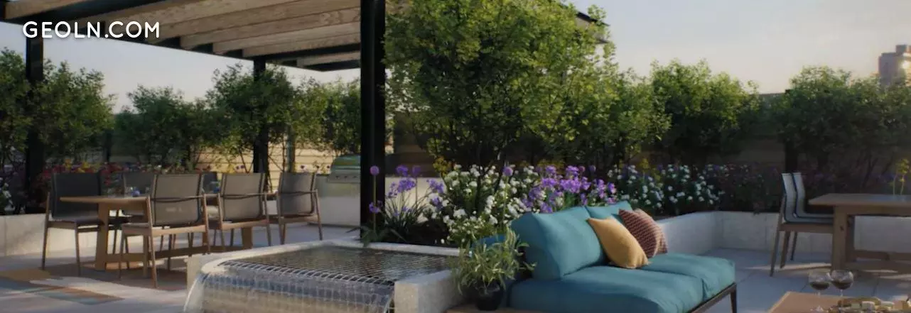 Residents have access to a rooftop terrace featuring built-in, chef-grade cooking stations. With 3,800 square feet of lush gardens, the rooftop terrace also boasts several al fresco lounge spaces and views of Lake Michigan, Lincoln Park and the Chicago skyline. Other amenities include a high-performance fitness center, a 24-hour door attendant and a secure, heated garage.