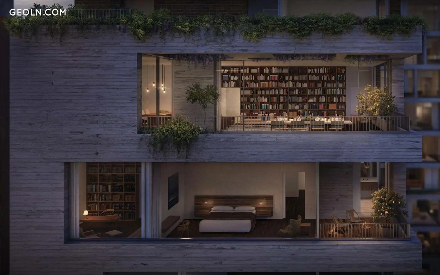 Architect Isay Weinfeld’s first New York City residential condominium commission in the heart of West Chelsea overlooking the High Line. Thirty-six residences are distributed across two towers which surround two lush gardens on a shared base.