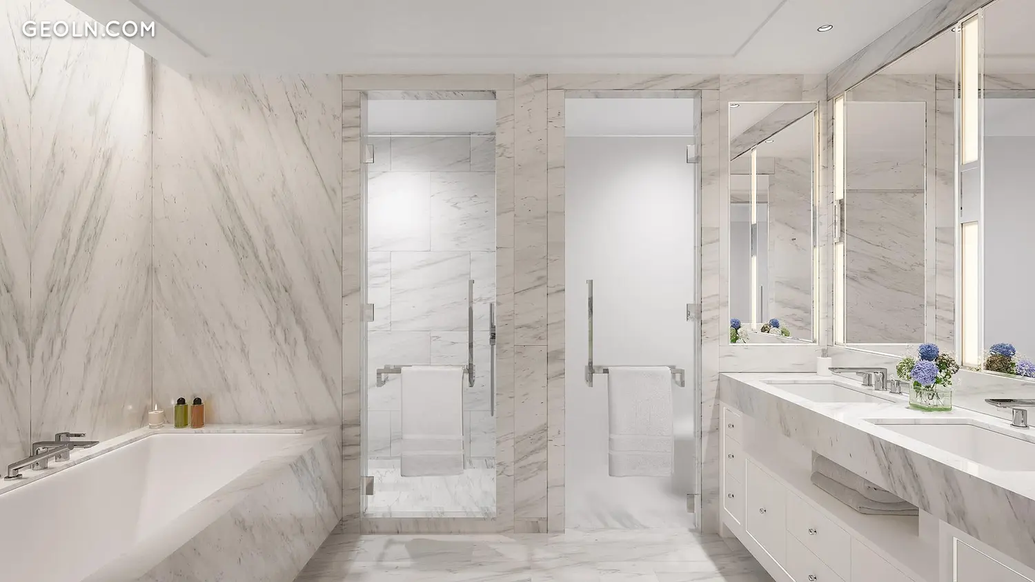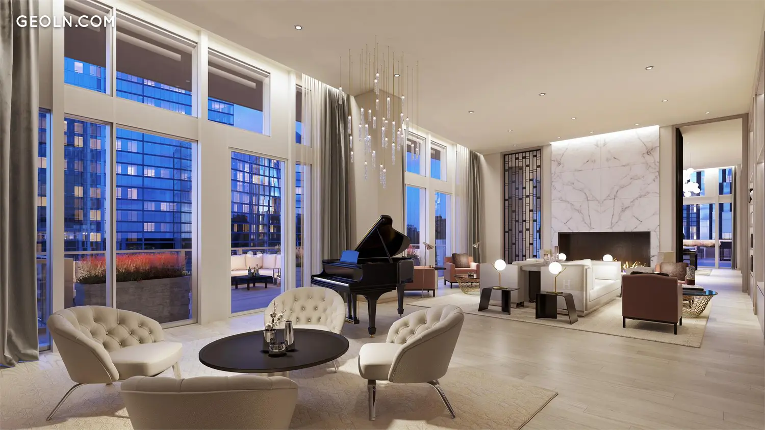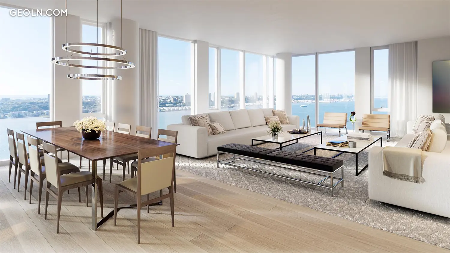 One Waterline Square, designed by Pritzker Prize-winning architecture firm Richard Meier & Partners Architects, commands a full city block in its prominent waterfront location where Midtown meets the Upper West Side. Meier’s signature precision is reflected in the undulating glass and metal facade that offers visual interest from each exposure. At the top of the building, elegantly proportioned residences are graced with high ceilings, enormous banks of windows, and a rich selection of handpicked materials.
