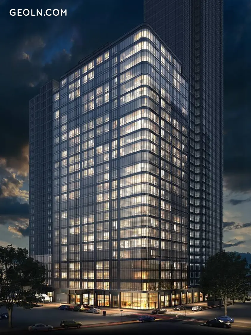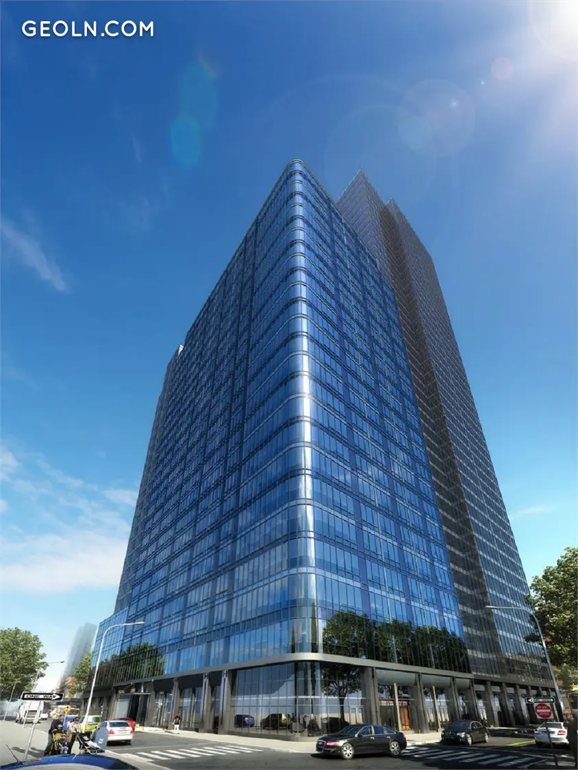 This sleek, contemporary, 21st Century tower has elements that hark back to Long Island City’s industrial roots. The canopy on the entrance and the bays made of stone and metal were inspired by the old loading bays of an earlier day.