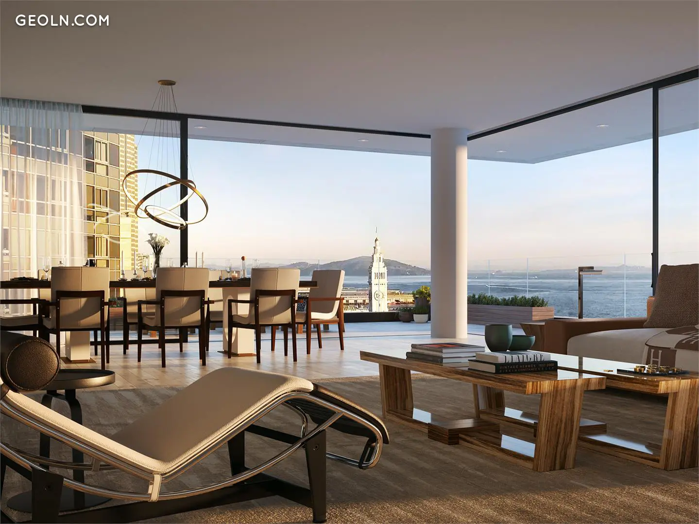 The refreshingly intimate One Steuart Lane was meticulously designed to strike an effortless balance between a deeply modern sensibility and a timeless San Francisco presence. Drawing inspiration from the waterfront, the building features architecture and residential interiors by the renowned firm of Skidmore, Owings & Merrill (SOM) and shared public space interiors by Rottet Studio—a fitting pedigree for the last opportunity for new development on the city’s most prized waterfront avenue.