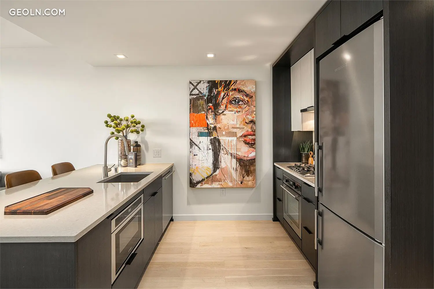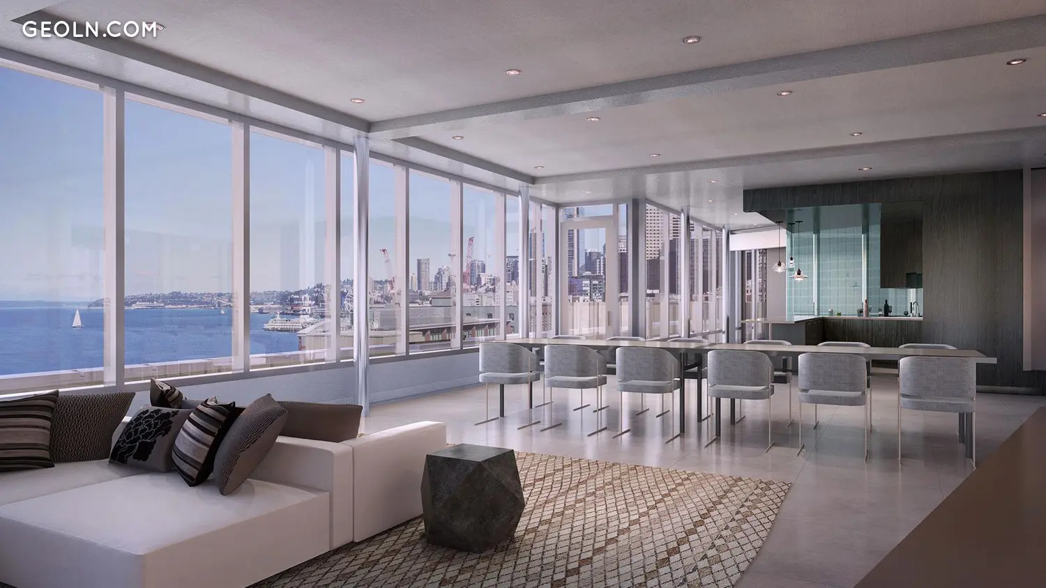 Gridiron is an irreplaceable fusion of historic and contemporary. The community of 107 glass-sheathed residences has been constructed from the ground up while carefully preserving the brick facade of the 115-year-old iconic Johnson Plumbing building in Pioneer Square. The restored masonry exterior on the first floor will welcome vibrant retail surrounded by the warm brick and rustic beams. Within Seattle’s newest downtown condominiums above, Pioneer Square based designer Jennie Gruss layered light, texture, and color to create a contemporary, neutral backdrop to the historic building surround and the urban energy outside.