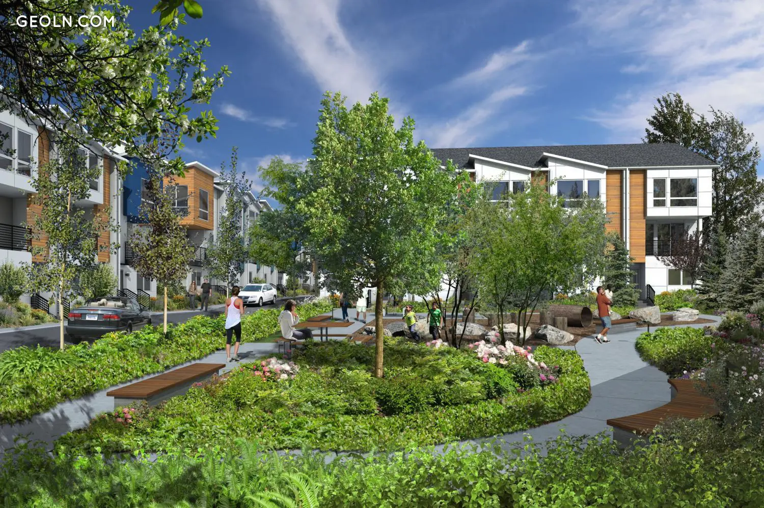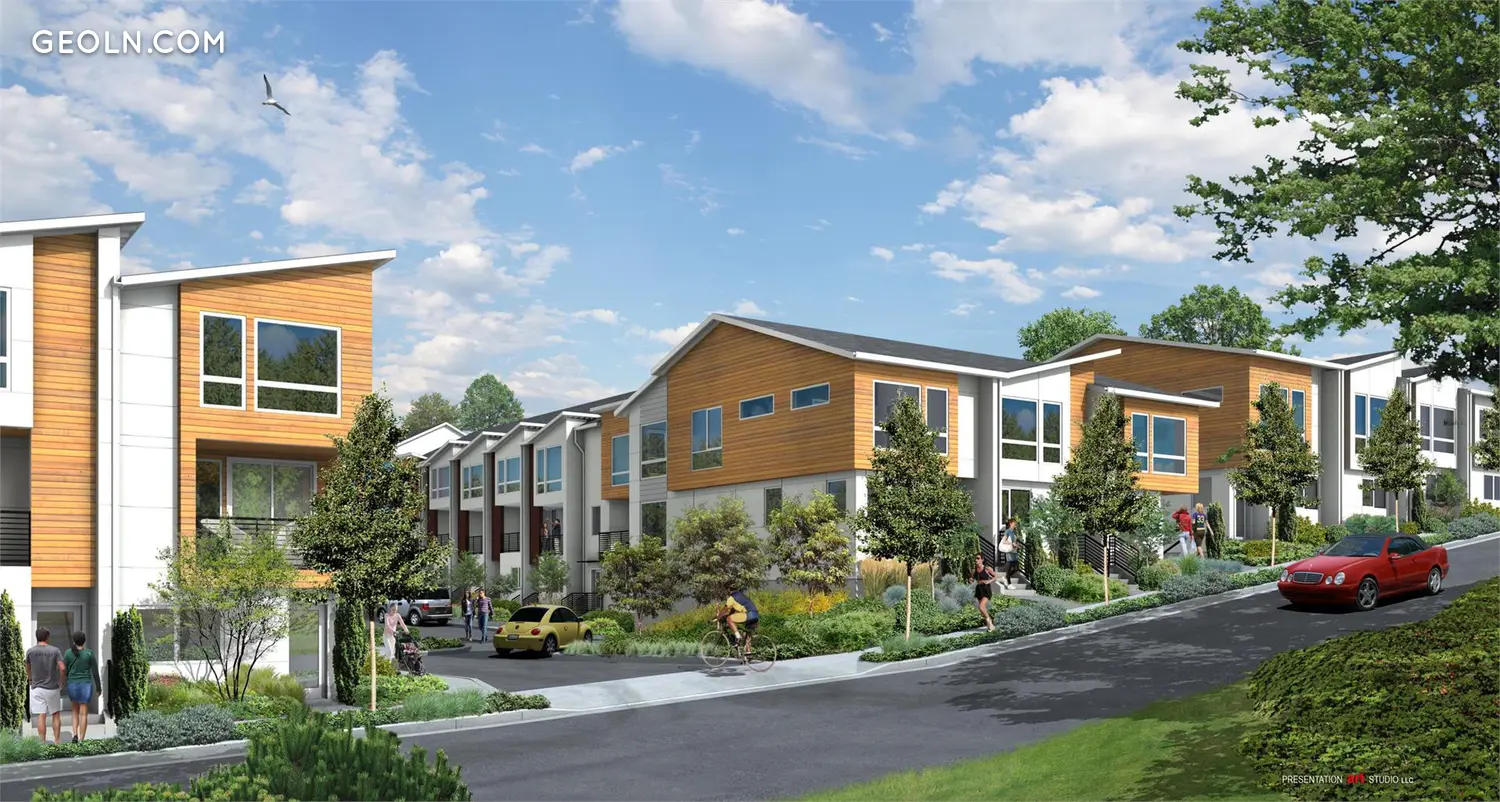 Ravenna88's collection of townhomes present a fresh look and feel - clean lines, dramatic angled roofs, a modern color palette, cedar accents and metal railings. Choose from a variety of plans, ranging in size from 1,400 to 1,800 sq ft, with 2 to 4 bedrooms including nicely appointed master suites, great room designs with island kitchens, decks and attached 1 and 2-car garages.