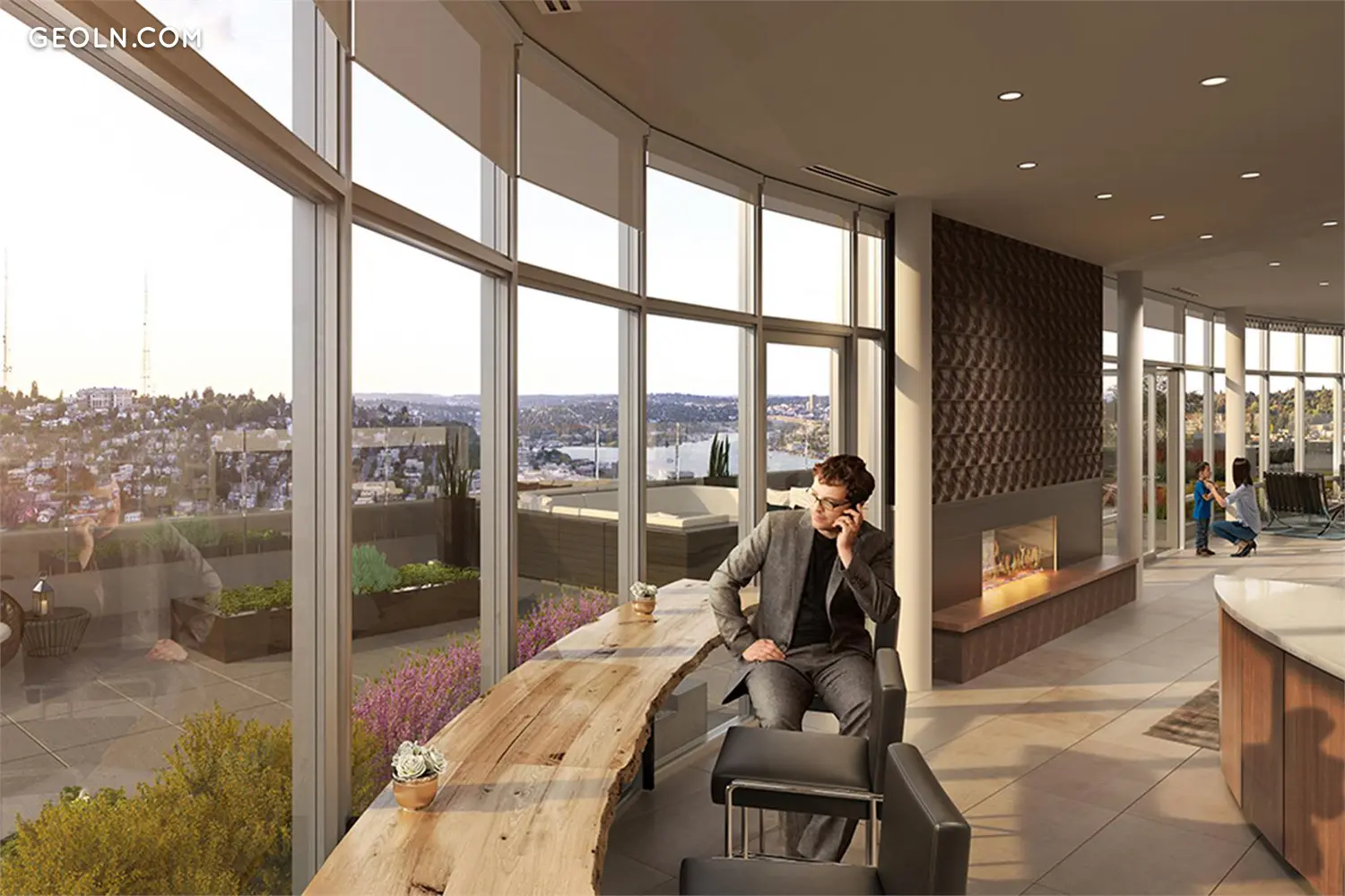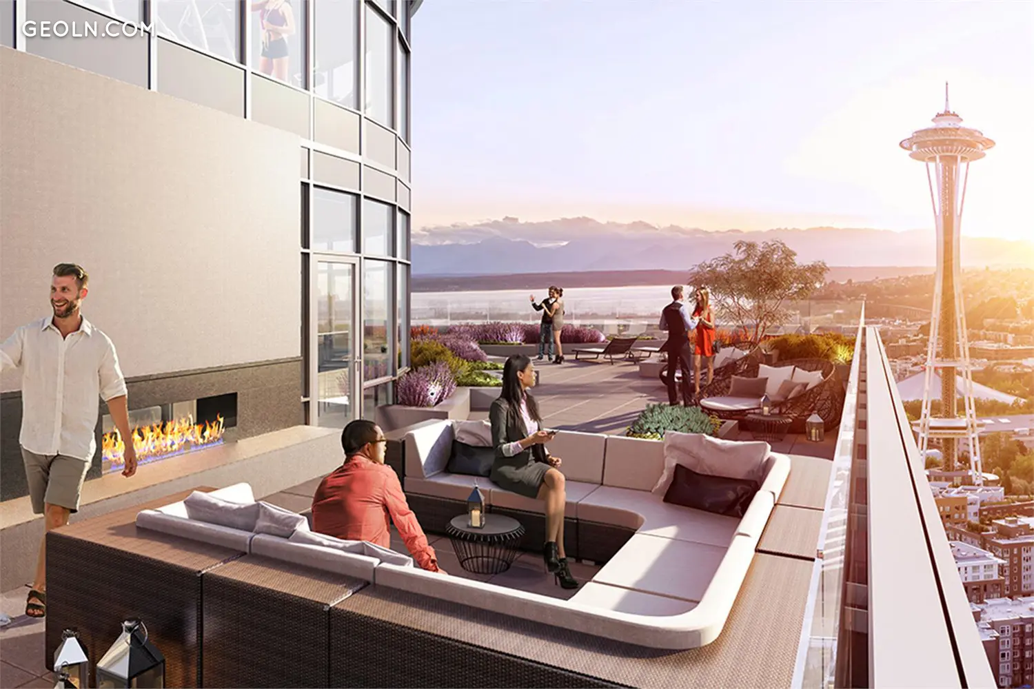 Spire’s striking architecture enhances the Seattle skyline while offering a dynamic and welcoming pedestrian environment at the building’s base. The architecture responds to the unique local character of the Belltown neighborhood. The bold design maximizes breathtaking, unobstructed views of the waterfront, skyline and beyond.