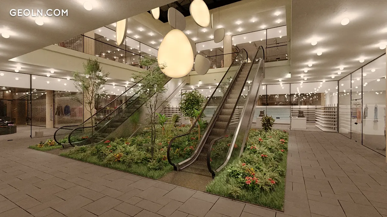 该对象保留了三层地下停车场等功能。一楼是一个购物中心。