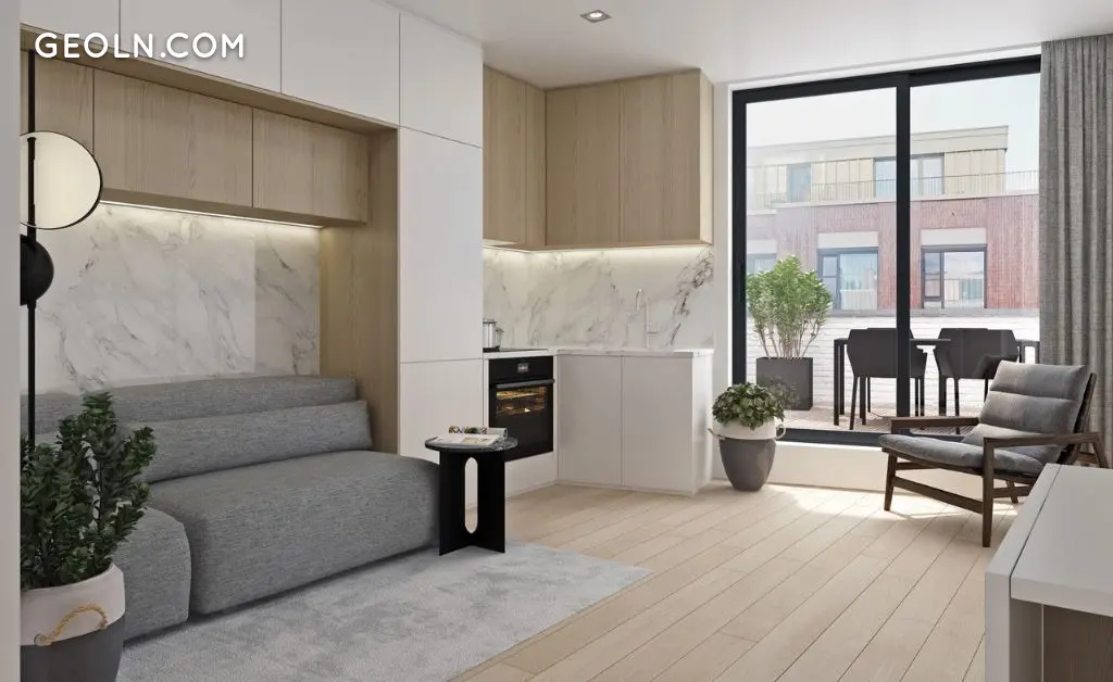 居住面积:介于 36 平方米(2 个屋顶公寓)、+/- 60 平方米和 119 平方米(带花园的底层)之间。