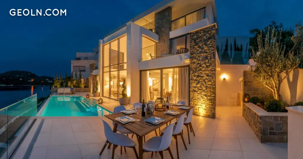 该物业建有四间带连接浴室的卧室,一间健身房和一个无边泳池。